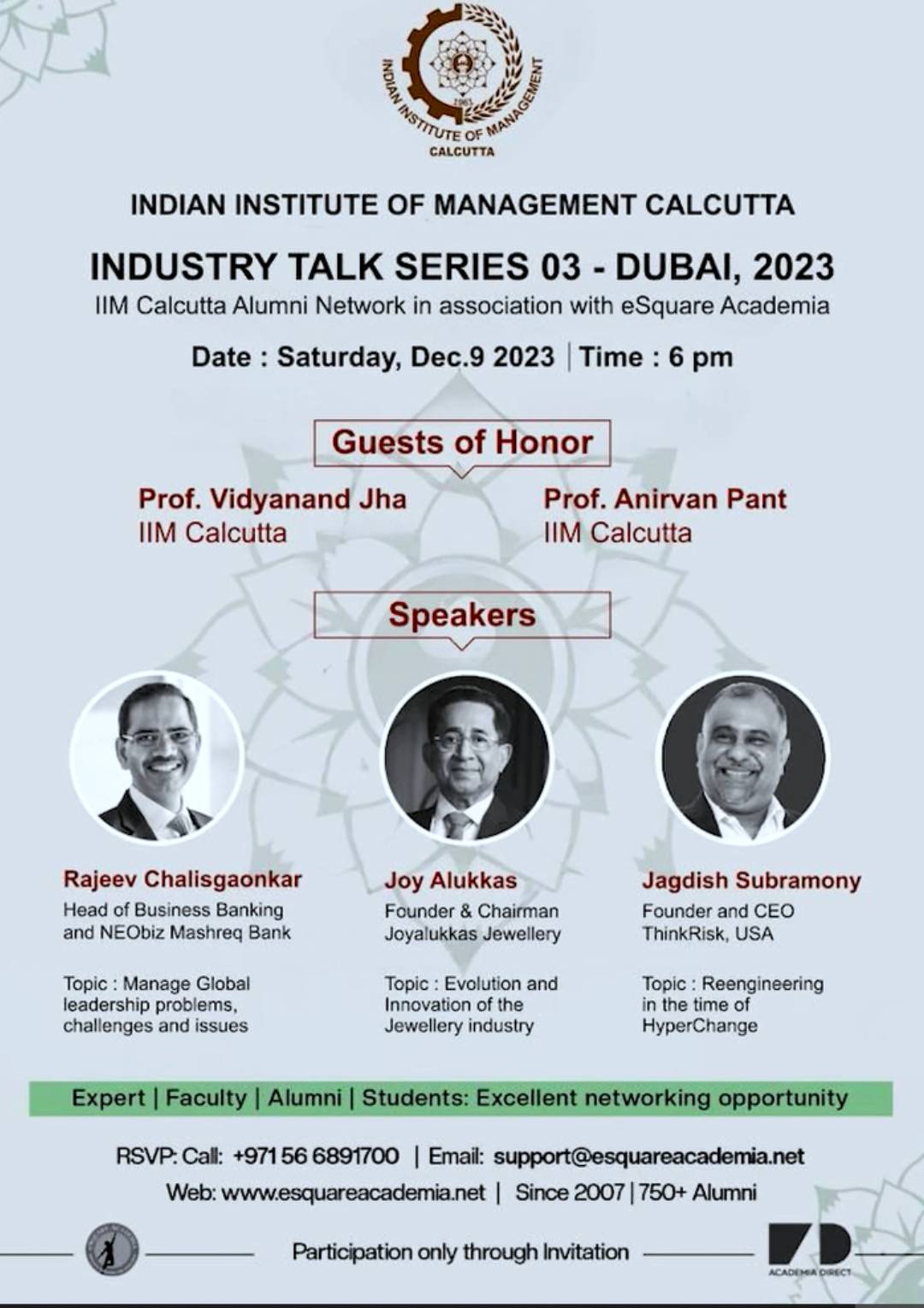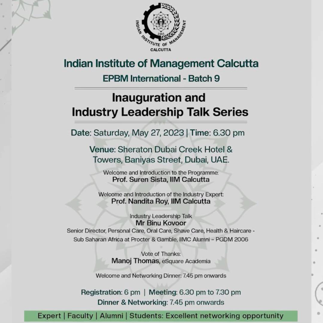 Speaker 1: Mr. Rajeev Chalisgaonkar, Head of Business banking & NEObiz at Mashreq Bank Speaker 2: Mr. Joy Alukkas, Founder & Chairman of Joyalukkas Speaker 3: Mr. Jagdish Subramony , Founder & CEO of ThinkRisk Professors: Prof. Vidyanand Jha and Prof. Anirvan Pant Read More