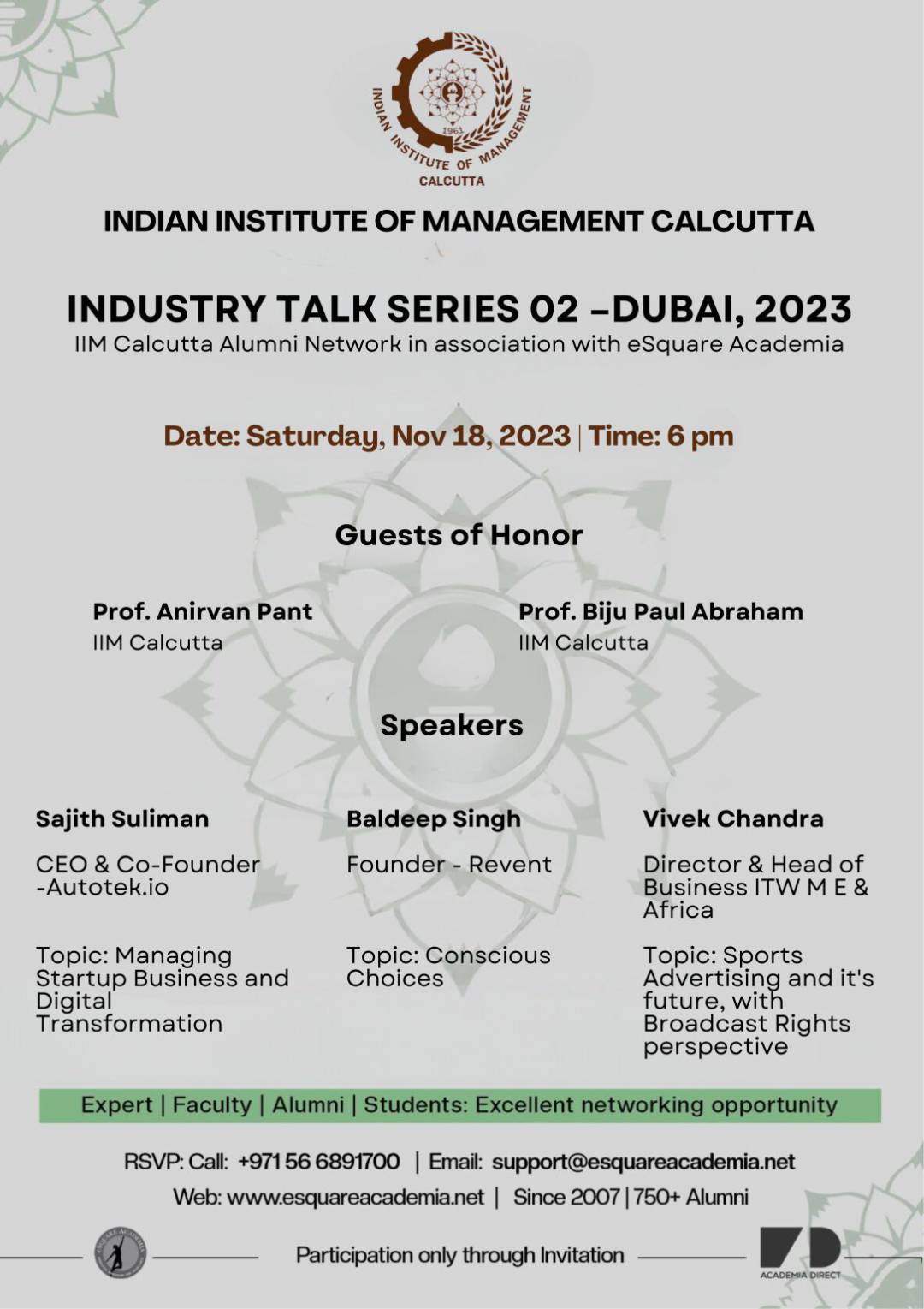 Speaker 1: Mr. Baldeep Singh - Founder: Revent, Speaker 2: Mr. Sajith Suliman - CEO & Co-founder: Autotek, Speaker 3: Mr. Vivek Chandra - Director & Head of Business: ITW ME & Africa Professors: Prof. Biju Paul Abraham and Prof. Anirvan Pant Read More